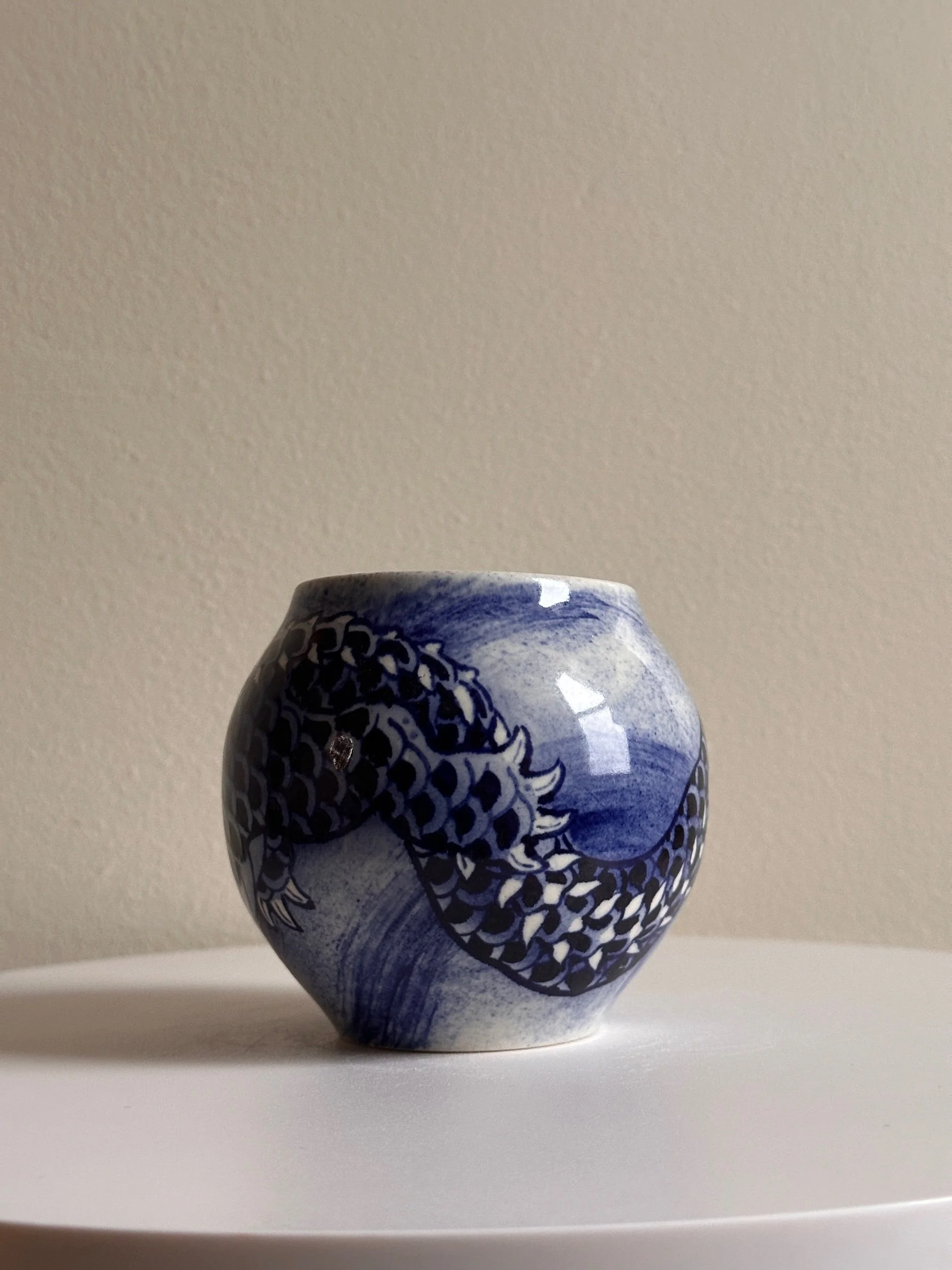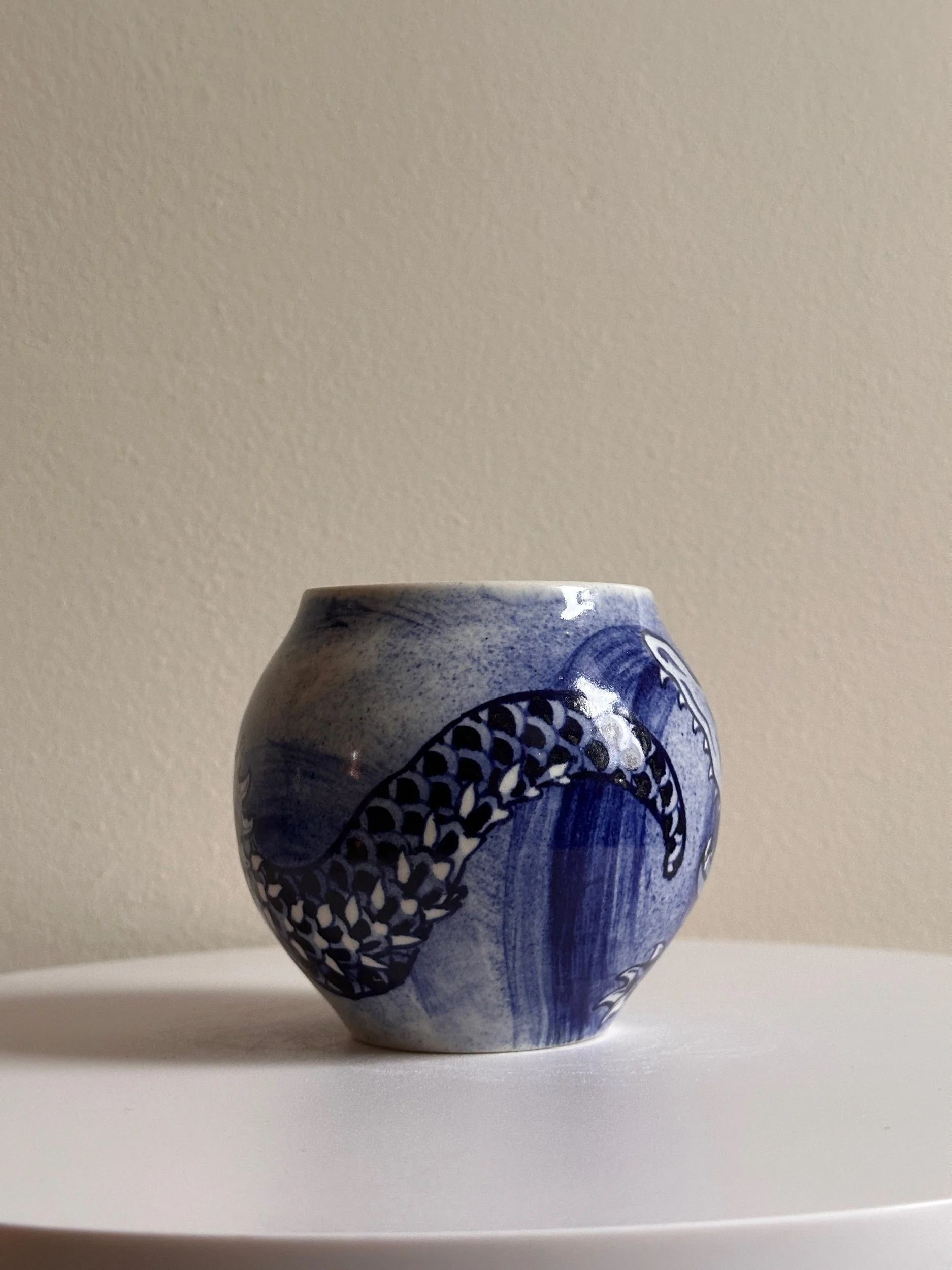 Ceramic thrown by Risa Nishimori at Togei Kyoshitsu, hand painted with cobalt and underglaze.