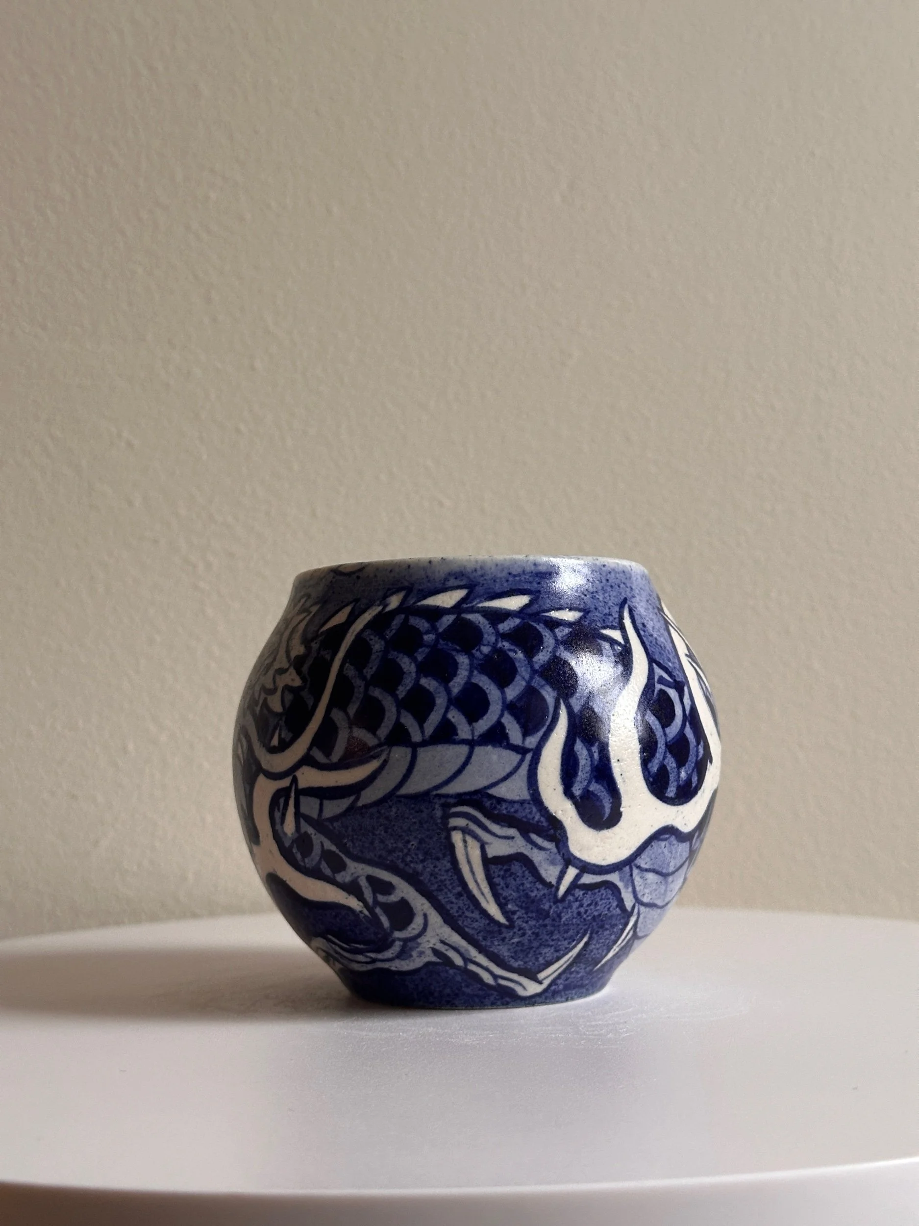 Ceramic thrown by Risa Nishimori at Togei Kyoshitsu, hand painted with cobalt and underglaze.